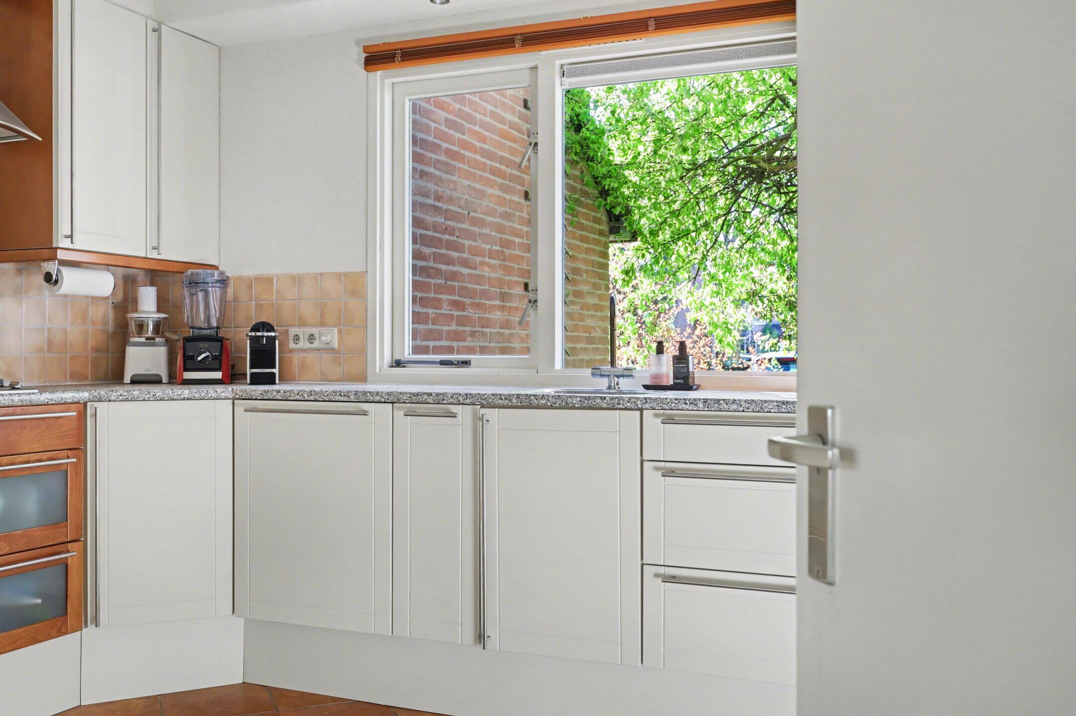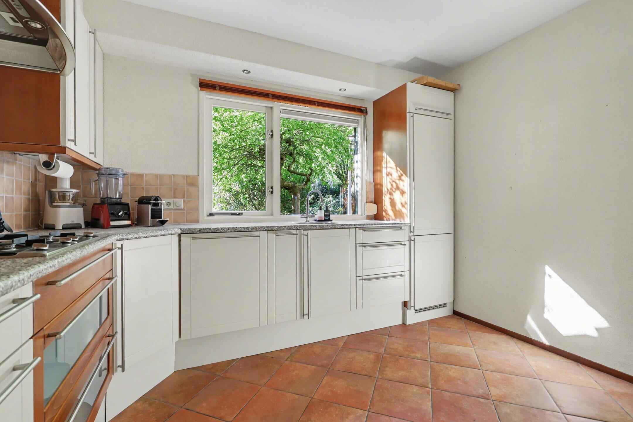 Op de begane grond bevindt zich een lichte woonkamer met daarnaast een gesloten keuken van circa 11 m². De woonkamer biedt een prettige leefruimte waar je op een ontspannen manier kunt samenkomen, terwijl de keuken een praktische en afzonderlijke plek biedt voor het bereiden van maaltijden.