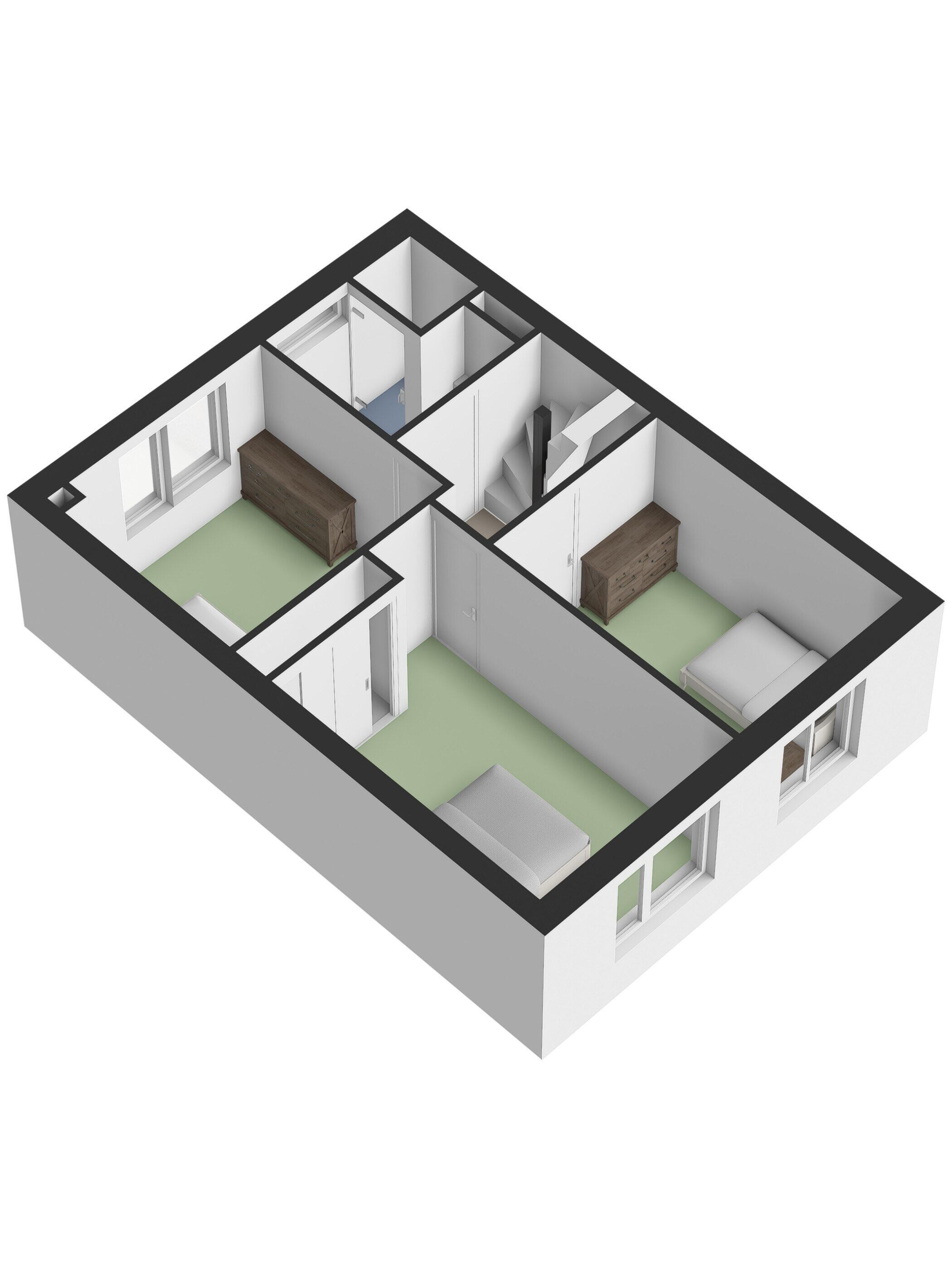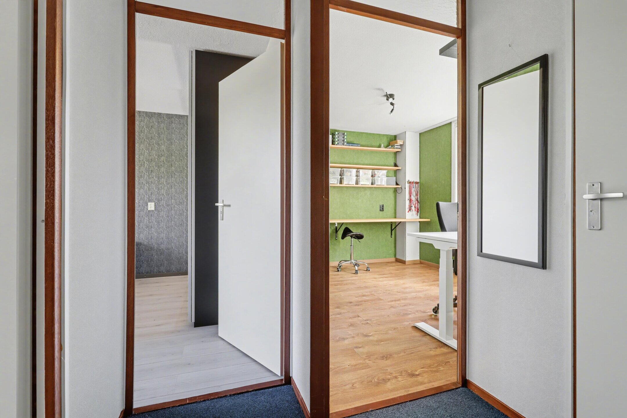 De tweede verdieping beschikt over een vierde slaapkamer die zich uitstekend leent als thuiswerkplek, logeerkamer of extra slaapkamer. Op de overloop bevinden zich tevens de aansluitingen voor de cv-installatie en het witgoed, wat zorgt voor extra praktisch gemak.